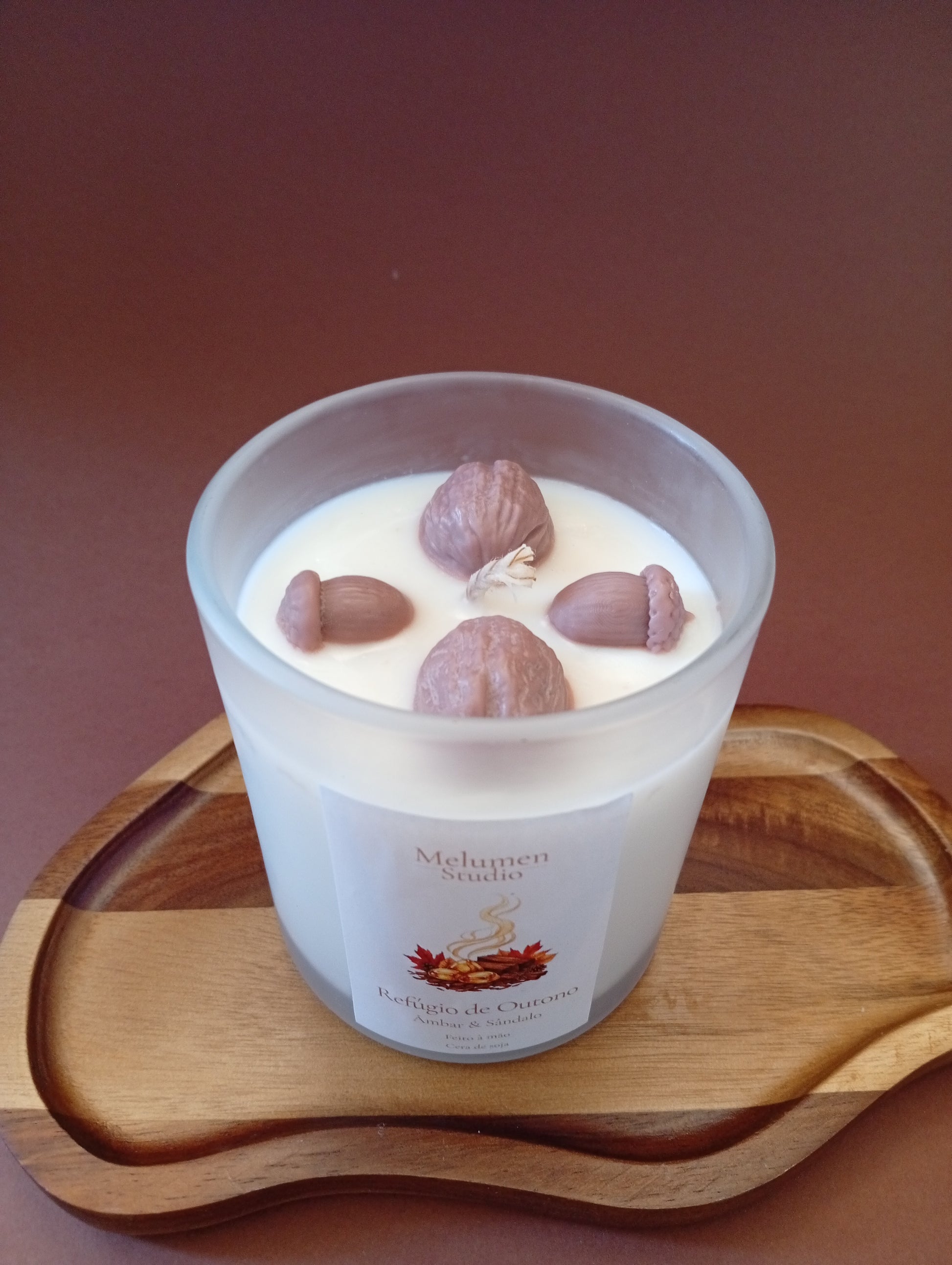 A nossa Vela Âmbar e Sândalo eleva o teu ambiente durante este Outono. A profundidade resinosa e quente do Âmbar funde-se perfeitamente com a riqueza suave e amadeirada do Sândalo, criando uma fragrância que é simultaneamente envolvente e clean.